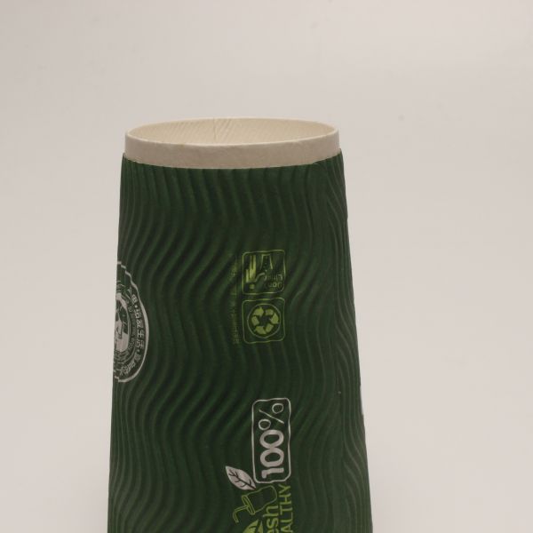 Vertical Ripple Double Wall Paper Cup Personalized Green Recyclable For Coffee Images |